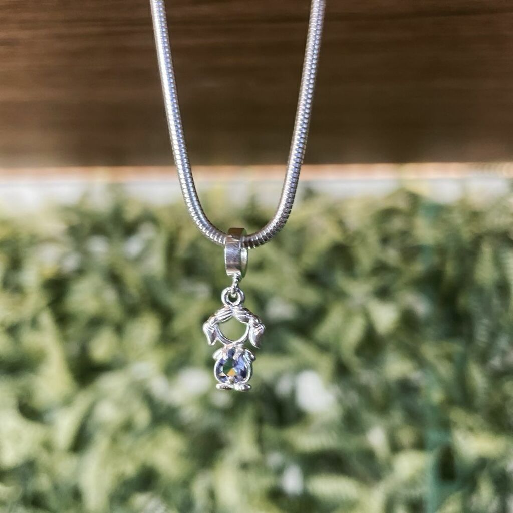 Berloque confeccionado em prata 925 legítima, representando um menininho com boné, símbolo de afeto e ternura. Seu diferencial está na delicada zircônia cúbica azul em formato de coração, posicionada na região da barriga, conferindo à peça um toque emocional e visual encantador.